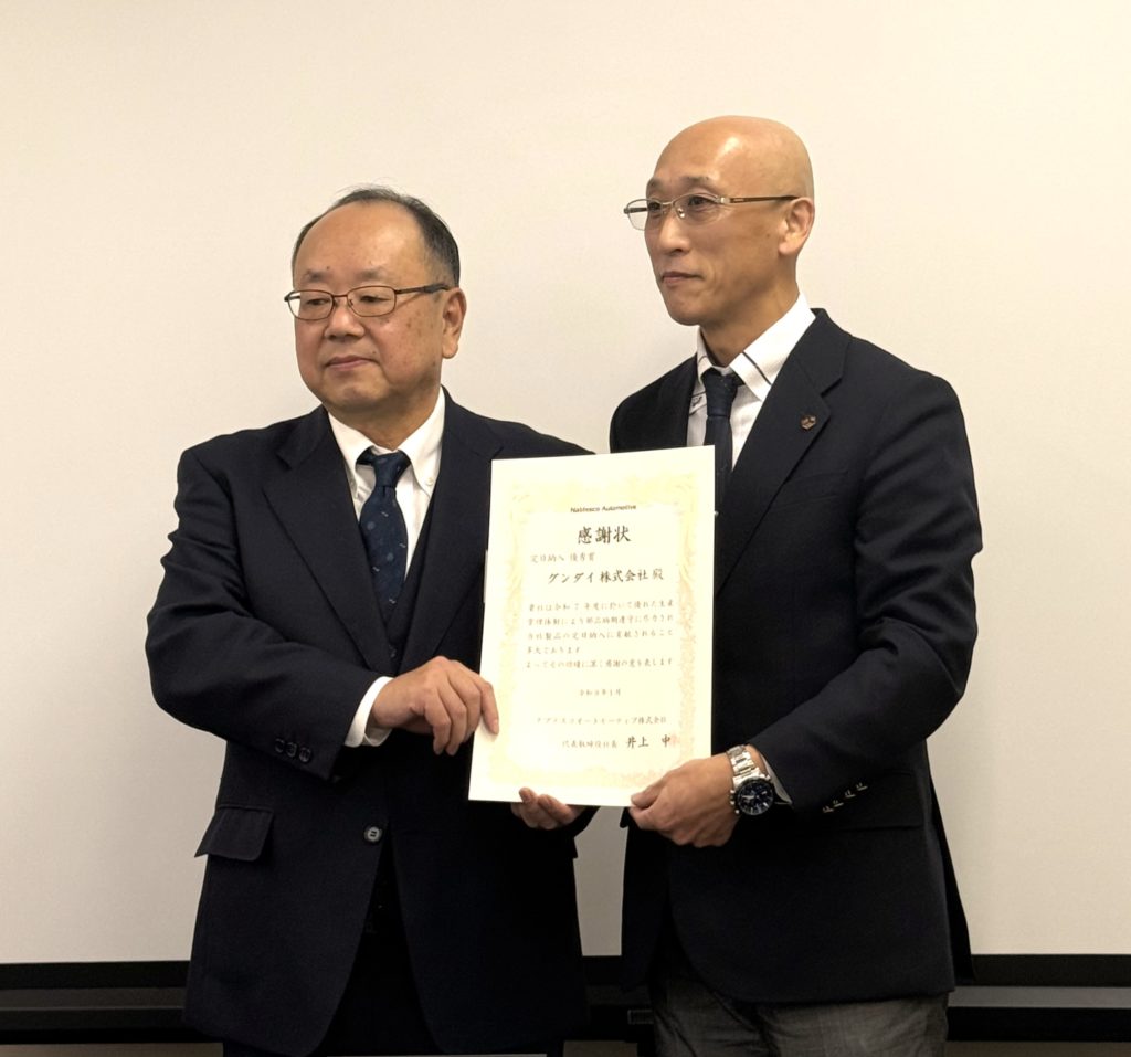 ナブテスコオートモーティブ株式会社様より感謝状を頂きました