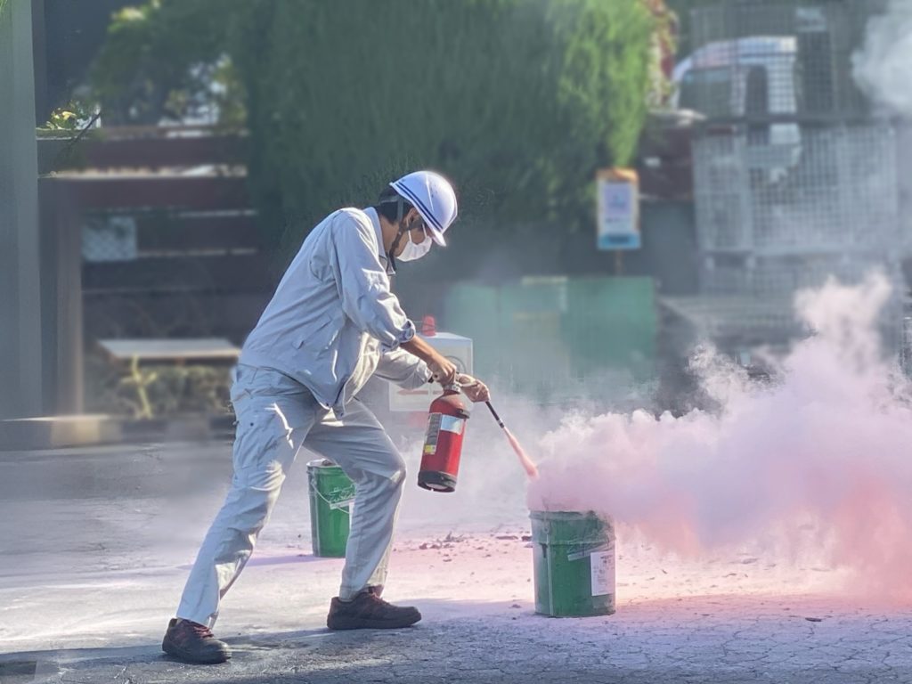 今年も、安全講習会を実施いたしました。火災発生時への対応を学び、動画鑑賞、避難訓練、消火器の実習を行いました。これからも毎日ゼロ災へ向き、防災意識を高めて、火災対応教育を実施していきます。