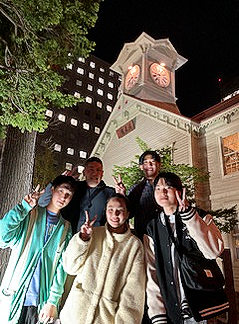 夜は皆で観光へ☆彡札幌時計台の前でみんなでピース(^^)/北海道勤務の同期2名とも再会できました!!