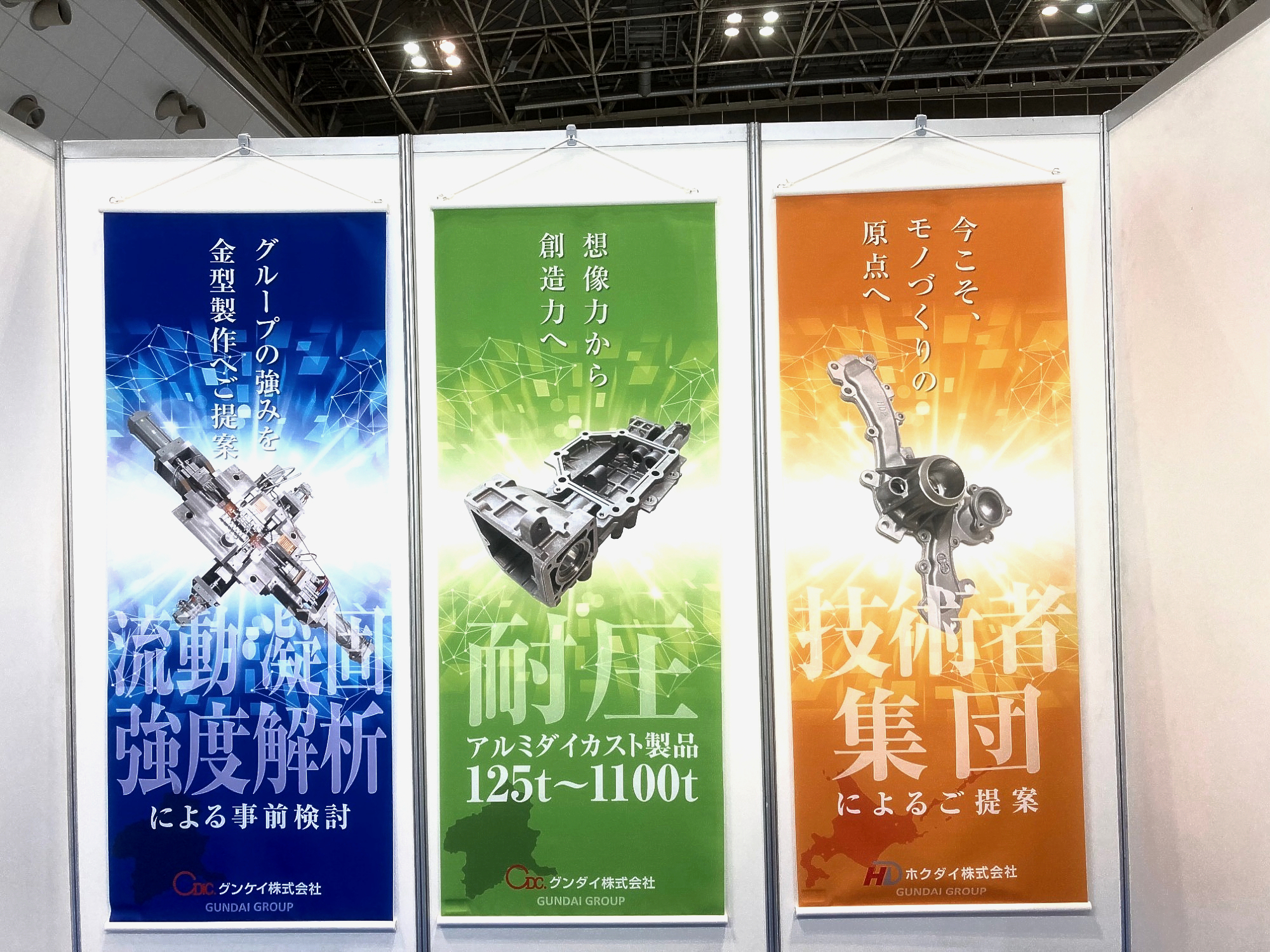 明日から東京ビックサイトにて開催される第27回機械要素技術展の会場準備を行っています!!大迫力の3社のタぺストリーが目印です!!