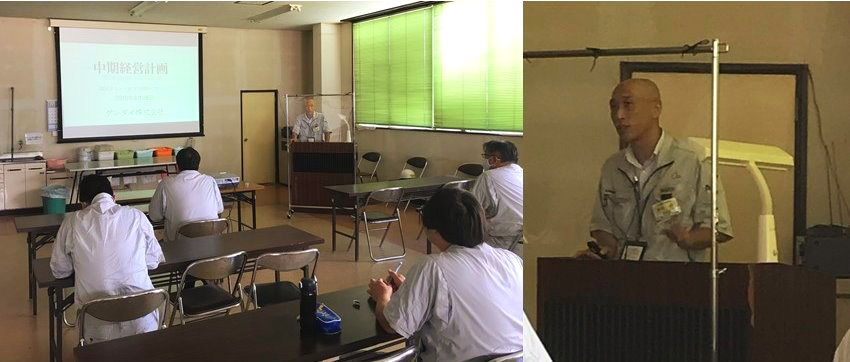 コロナ禍の中ではありますが出席者全員がソーシャルディスタンスを徹底し今後の企業方針の共有をはかりました。